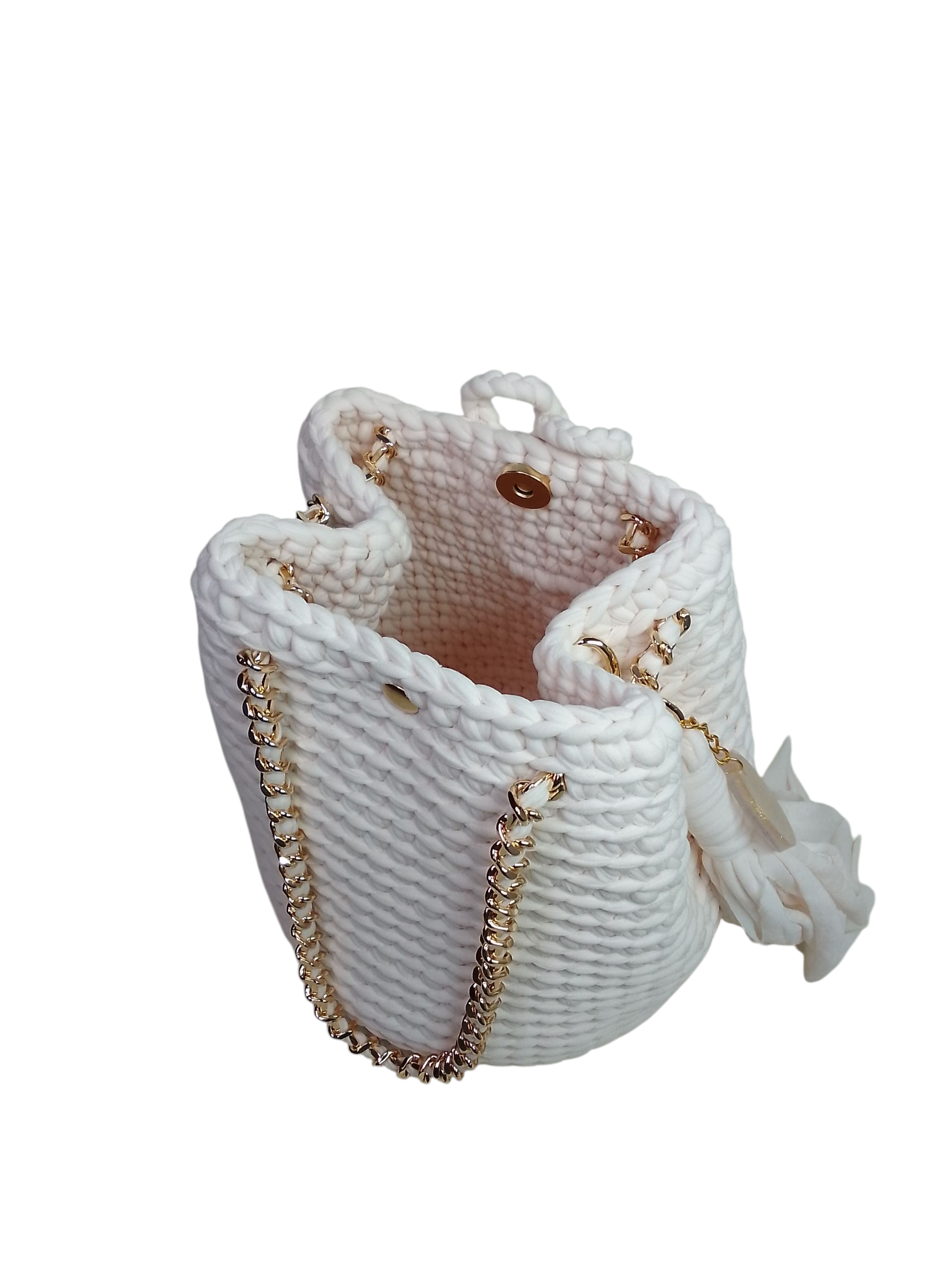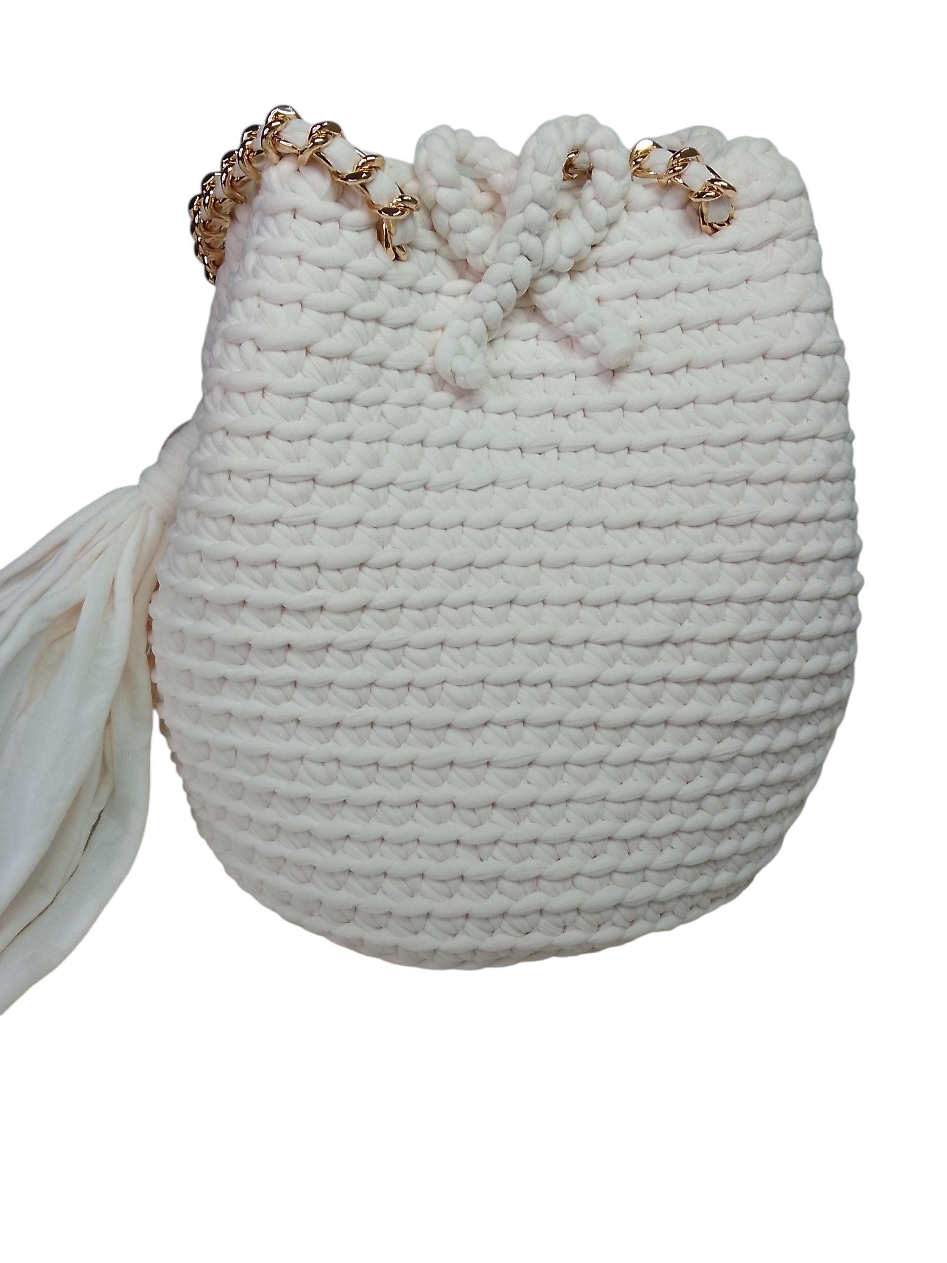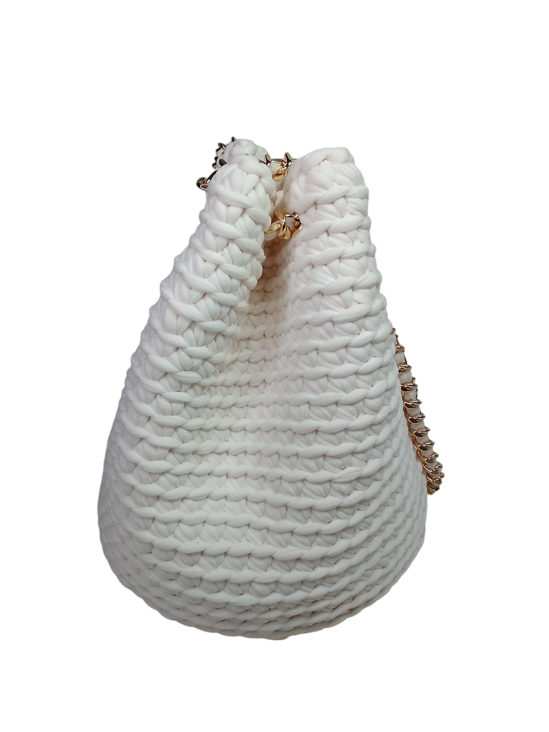 Bolso en Trapillo Pluma – color crudo rosado clarito, elegante.