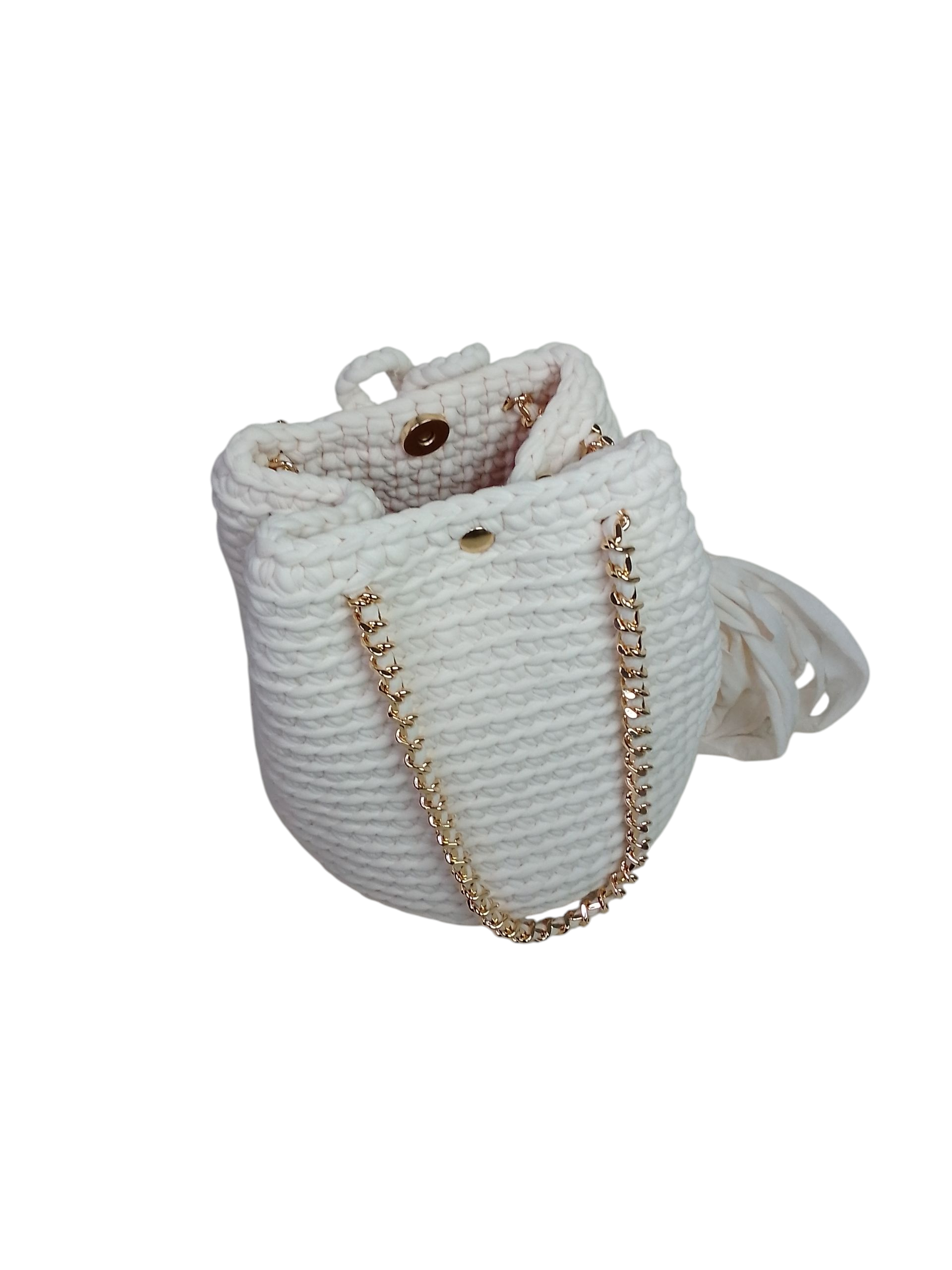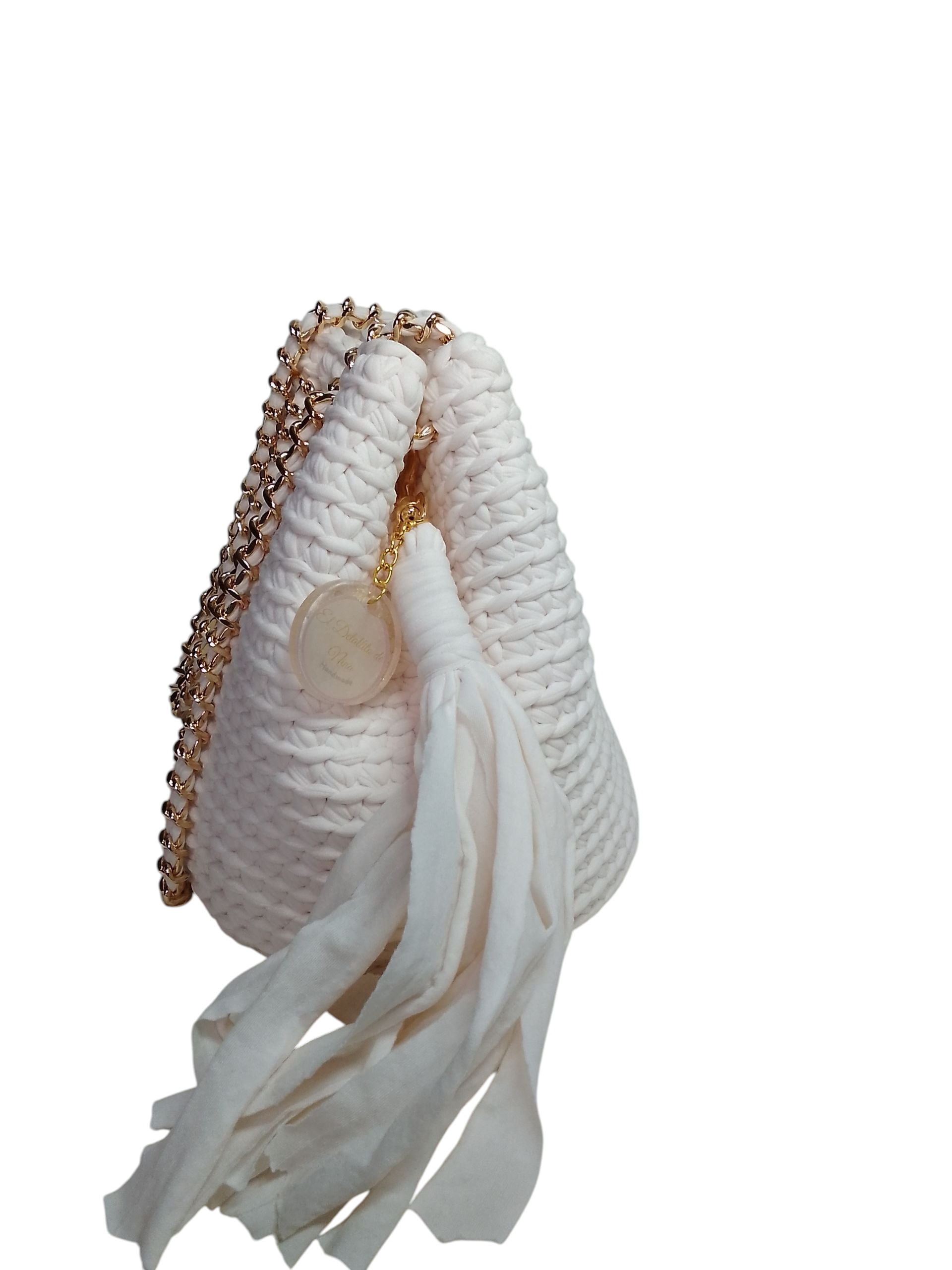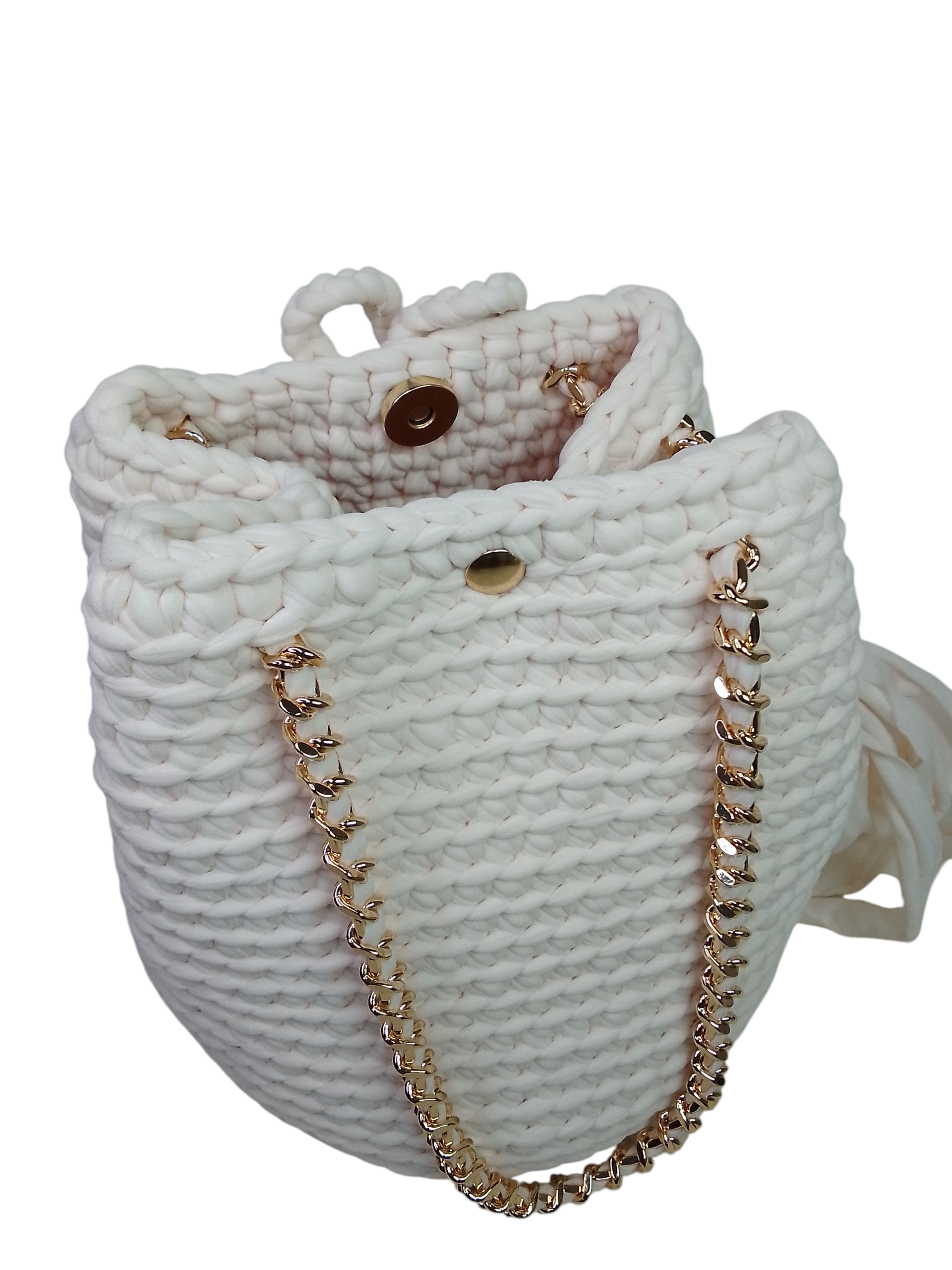 Bolso en Trapillo Pluma – color crudo rosado clarito, elegante.