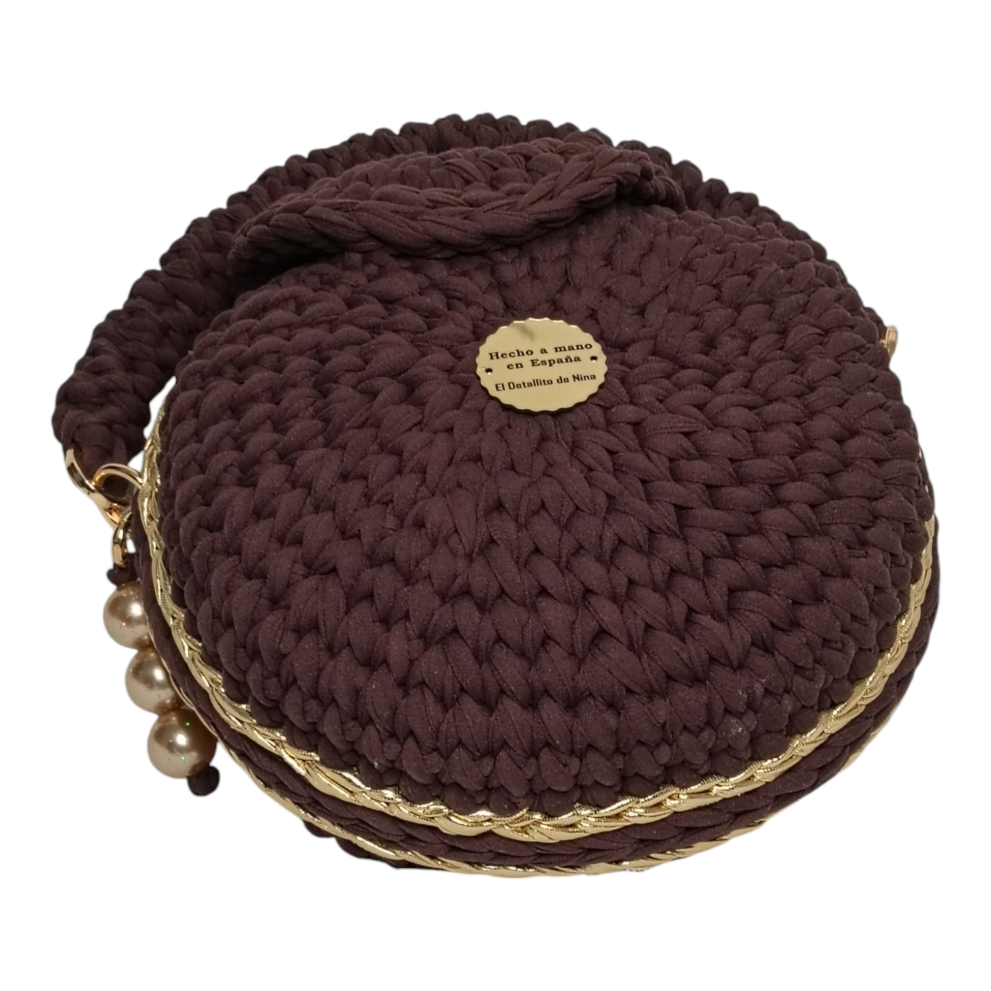 Nuestro bolso circular, tejido a mano con trapillo pluma de origen español, es el accesorio perfecto para mujeres que buscan combinar un estilo clásico con un toque de color moderno.